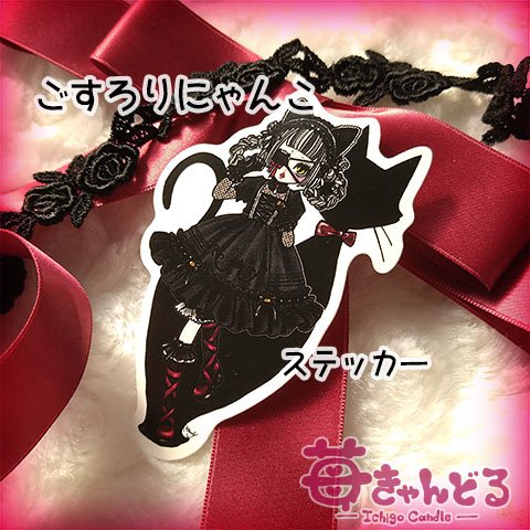 #ドリシン5で会いましょう 新作ステッカー お持ちします! #苺きゃんどる作品紹介 🍓ステッカー 「ごすろりにゃんこ」 にゃんこロリィタ。赤い靴の可愛い猫耳ゴスロリバージョン! #イラスト #ロリィタ 1/15 #ドリシン より発売です!