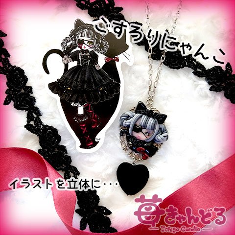 #苺きゃんどる作品紹介 #ドリシン 🆕 【ごすろりにゃんこ】 ・ステッカー ・貴方だけの女の子ネックレス カワイイ猫眼帯のゴスロリちゃん。 #イラスト #ハンドメイド作品 twitter.com/miama_yua/stat…