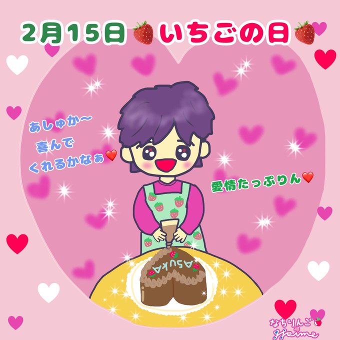 かなた君🍓今日は2月の苺ちゃんの日だねー😊🍓 今年のバレンタインはどうだったんかなぁ?飛鳥くんへ愛情たっぷりんなケーキ作ったのかも?😊 またお話し聞かせて欲しいなぁ😊❤️ #あすかなアート #あすかなと姫ピメはずっと一緒だよ #苺谷星空