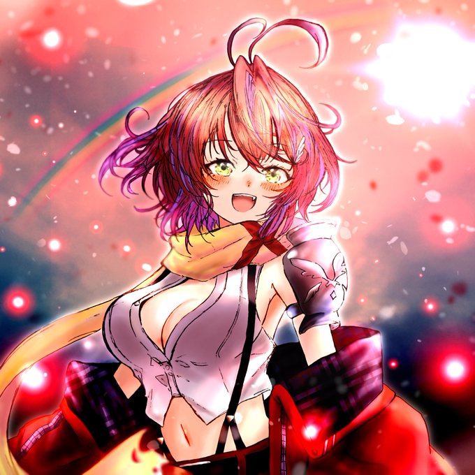 そしてこちらの背景の梨のようなものいぇーい!とちゅっちゅっちゅ!を2枚描かせていただきました #茜音カンナ #カンナ誕生2023 #カンナ・イン・わんだ~ランド #茜音色に染まれ #ななしいんく twitter.com/atsuta_gobat/s…