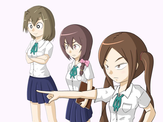 「茨城ごじゃっぺカルテット」の(元)生徒会3人組、右から会長の総和リリカさん、書記の下館ユウリさん、副会長の石下スミレさんです。 髪色や目の色に関しては情報を持っていないため、想像で塗っています。 副会長の訛りが好きですね。 #茨城ごじゃっぺカルテット #イラスト好きな人と繋がりたい