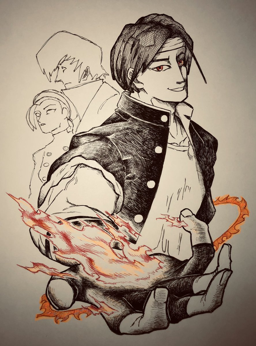 7月22日でKOF99稼動24周年 #KOF #THEKINGOFFIGHTERS #FGC #格ゲーキャラ描こうぜ #KyoKusanagi #草薙京 ネスツジャケット今見てもイカしてる K´とかいうハッシュタグ殺しの名前かっこよすぎる…
