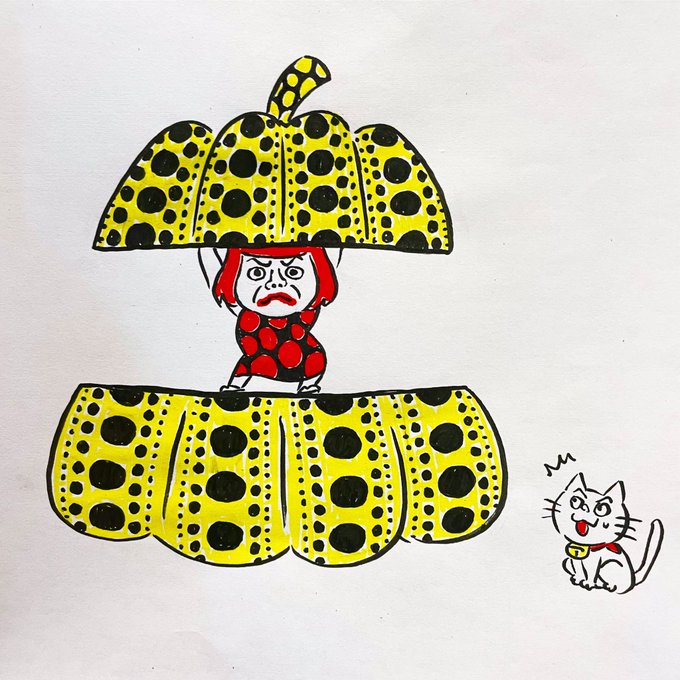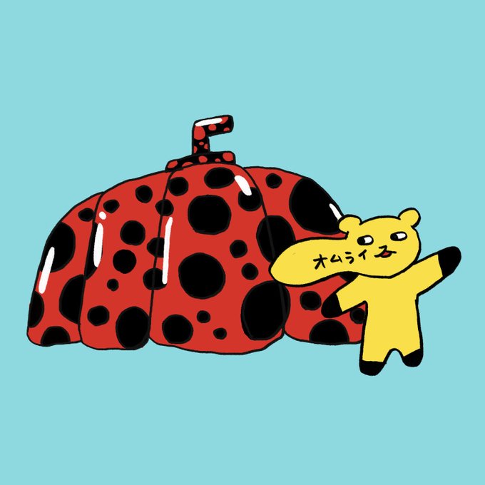 直島に来たオムライスくん。毎日オムライスくん156日目。 #オムライス #キャラクター #ゆるキャラ #illustration #絵 #illust #illustrations #illustrator #character #毎日オムライスくん #オムライス町 #絵描きさんと繋がりたい #オムライス #新幹線 #直島 #草間彌生 #naoshima #香川県 #art