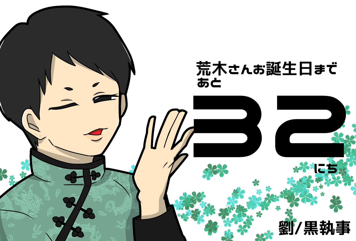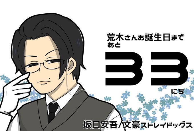 荒木さんお誕生日まであと32日!! 荒木さんの年齢に因んで40日前から毎日午前0時にカウントダウンのイラストを投稿しています🥳🎉✨✨ ⬇️リプ欄ではキャラとの思い出を3コマ程度の漫画にしてます。こちらも毎日投稿!⬇️ #荒木宏文 #荒木宏文誕生祭2023 #荒木さんバースデーカウントダウン2023