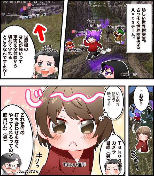【荒野E-スポーツ四コマ漫画 - 030】 『常にカメラ目線を注意しているTakoo選手』 📺試合アーカイブはこちら✨ youtube.com/@KnivesOut/str… #漫画が読めるハッシュタグ #荒野行動 #KOPL