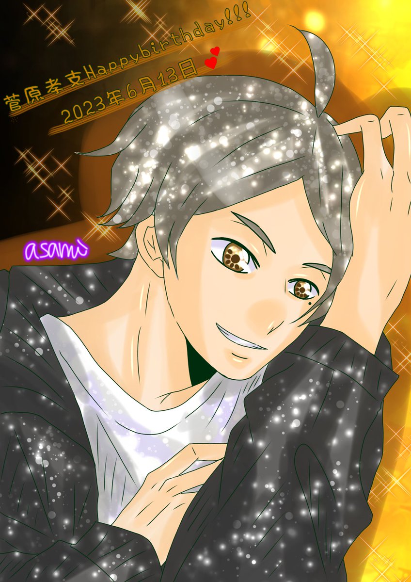スガさん💕お誕生日おめでとうございます🎂✨✨ 明るくて元気もらえる素敵な先輩! こんな先輩欲しかったぁ💕好きです! #菅原孝支誕生祭2023 #菅原孝支生誕祭2023 #菅原孝支 #haikyuufanart #Haikyuu