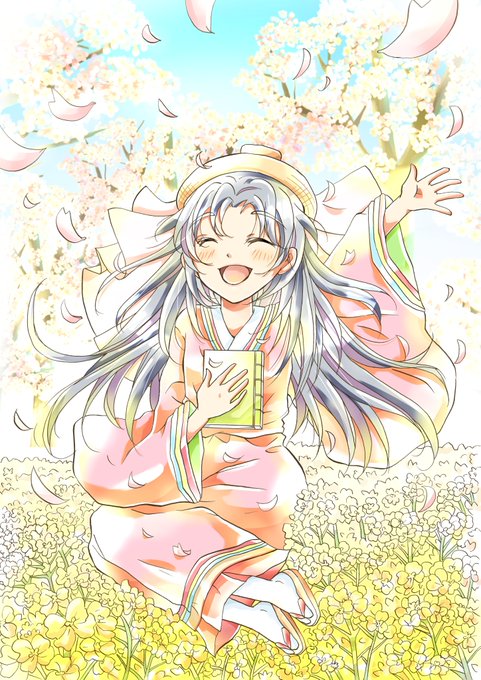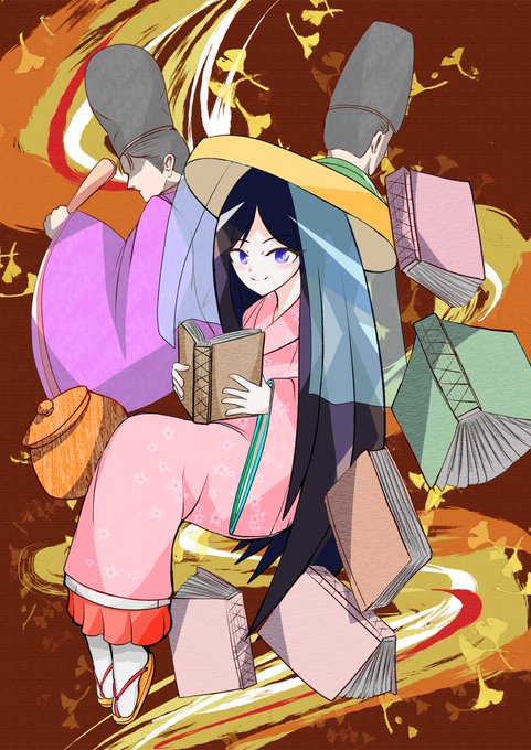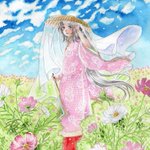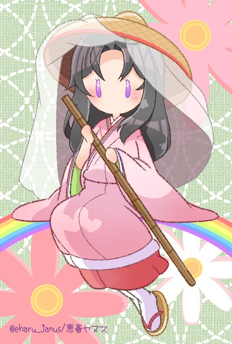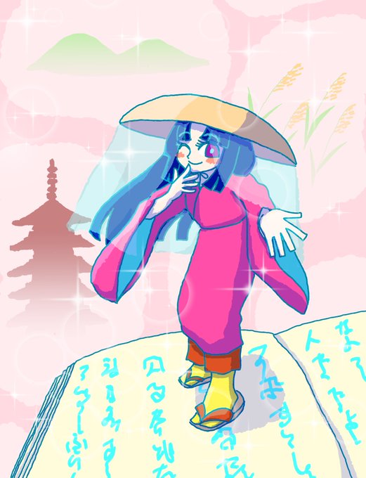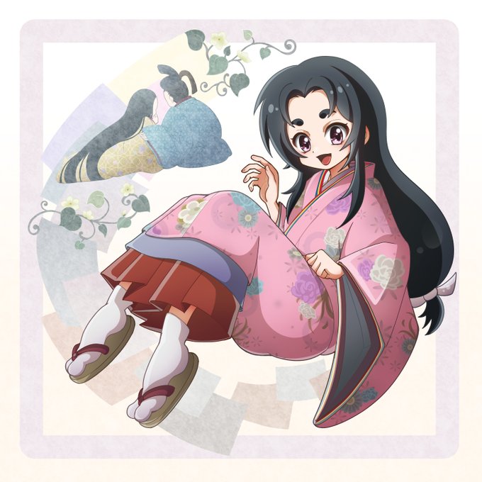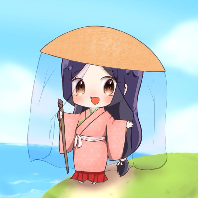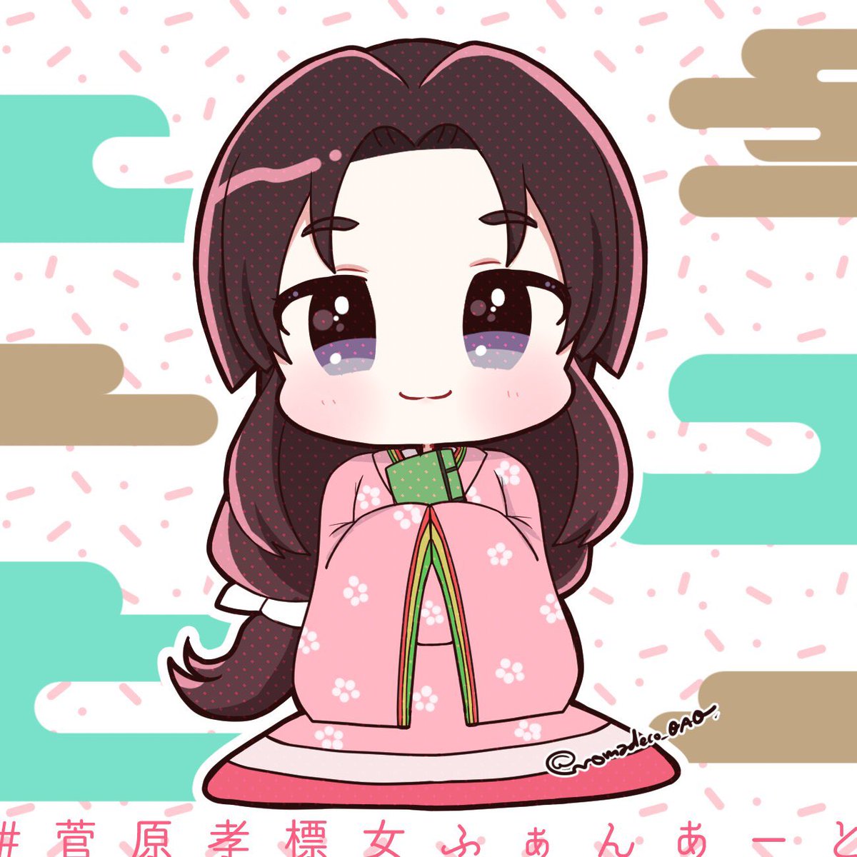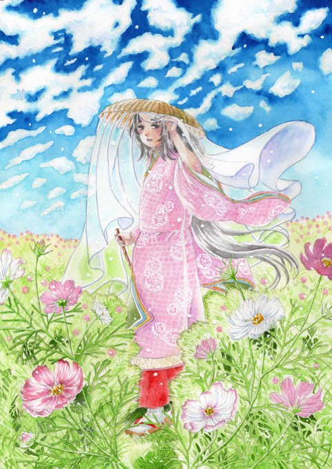 #菅原孝標女ふぁんあーと 💙3枚目:手描き風デフォルメ 画用紙に鉛筆で描いた風味の線画と、指人形のようにちょこんとした愛らしさのある素朴なデフォルメに仕上げてみました。 背景は市原市の花であるコスモスです🌸 今回は計3枚のファンアートを楽しく描かせて頂きました!有り難う御座いますっ♥️