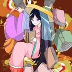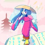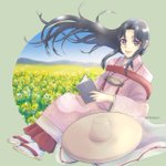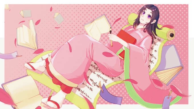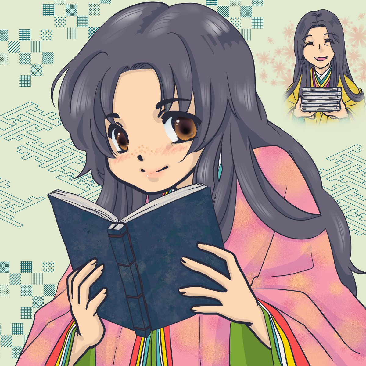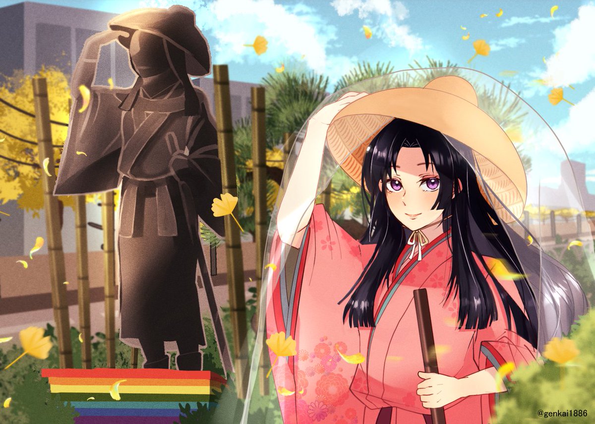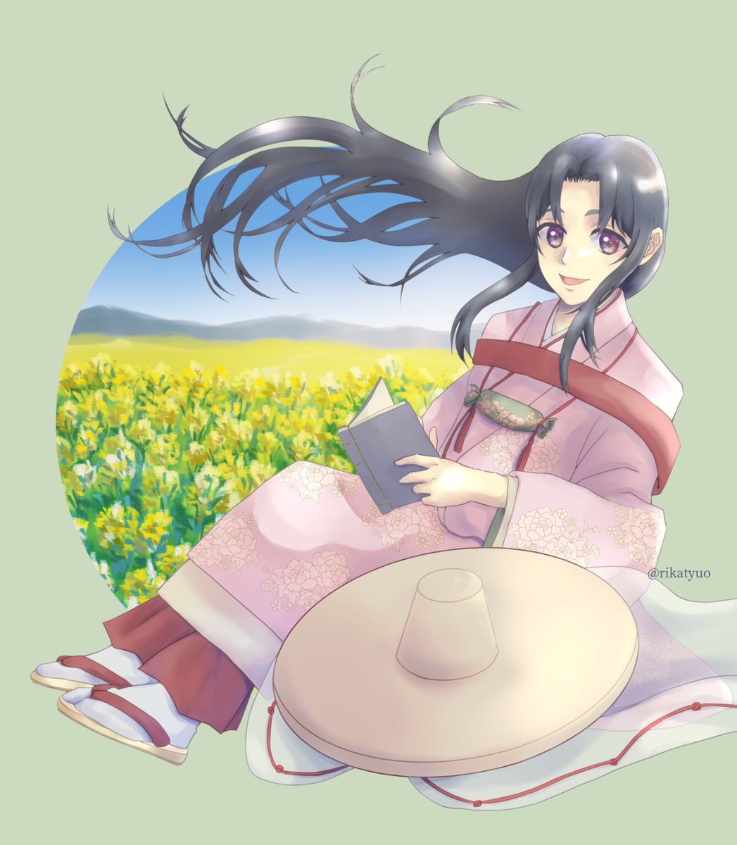#菅原孝標女ふぁんあーと 💙3枚目:手描き風デフォルメ 画用紙に鉛筆で描いた風味の線画と、指人形のようにちょこんとした愛らしさのある素朴なデフォルメに仕上げてみました。 背景は市原市の花であるコスモスです🌸 今回は計3枚のファンアートを楽しく描かせて頂きました!有り難う御座いますっ♥️