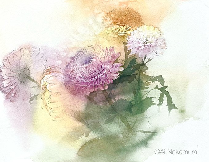 I painted a wild #chrysanthemum in #watercolor. Before I knew it, these #flowers were growing in the parking space at my house. 野菊を描きました。勝手にうちの駐車場に咲いてたやつ。 #watercolour #watercolorpainting #Watercolourpainting #stilllife #artwork #水彩画 #静物画 #菊
