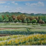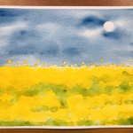#見た人も無言で黄色い何かを上げる 黄色 ビタミンカラー=菜の花がいいですネ^ - ^ 各務原河川環境楽園 去年の今頃の風景です。 アルシュ二つ切り+透明水彩 #watercolor #水彩画 #風景画 #透明水彩 #landscape #アナログ #河川環境楽園 #オアシスパーク #菜の花