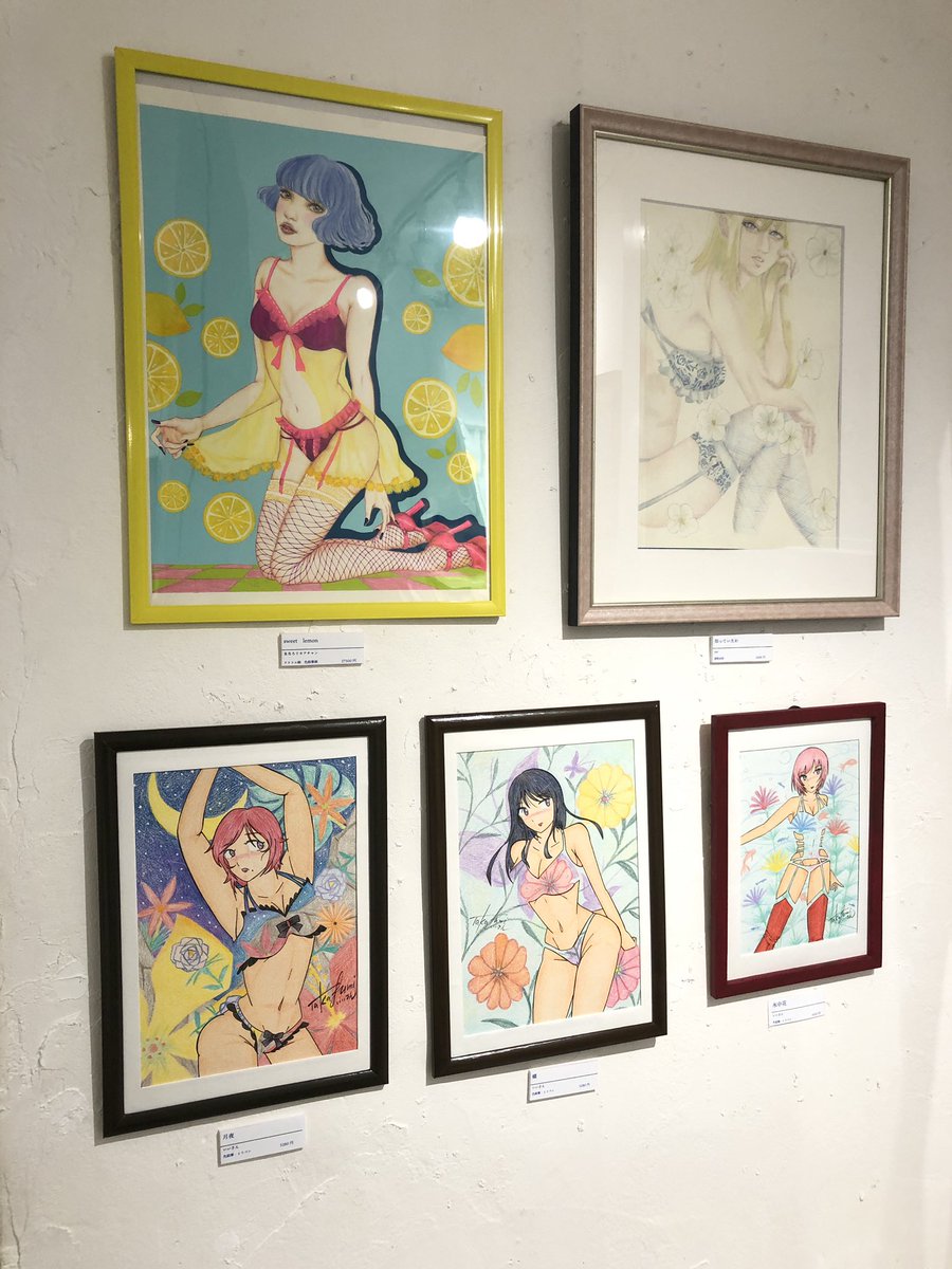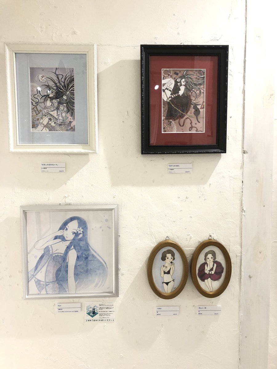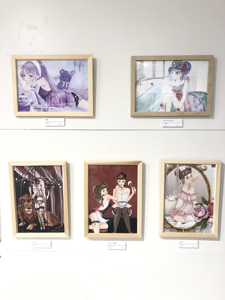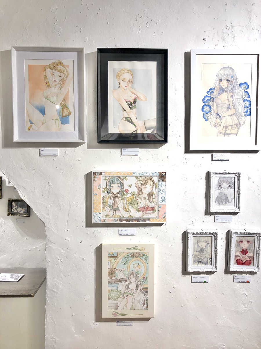 『 #華とランジェリー 』展 7日目◎ 皆さま、展示風景はご覧いただけましたか!🔍 各会場、入り口でアルコール消毒・検温のご協力をお願いしています🤒 マスク着用の上で、たっぷり楽しんでください😷 本日も18時まで🛋 引き続きよろしくお願いいたします! #IYN #イラスト好きな人と繋がりたい