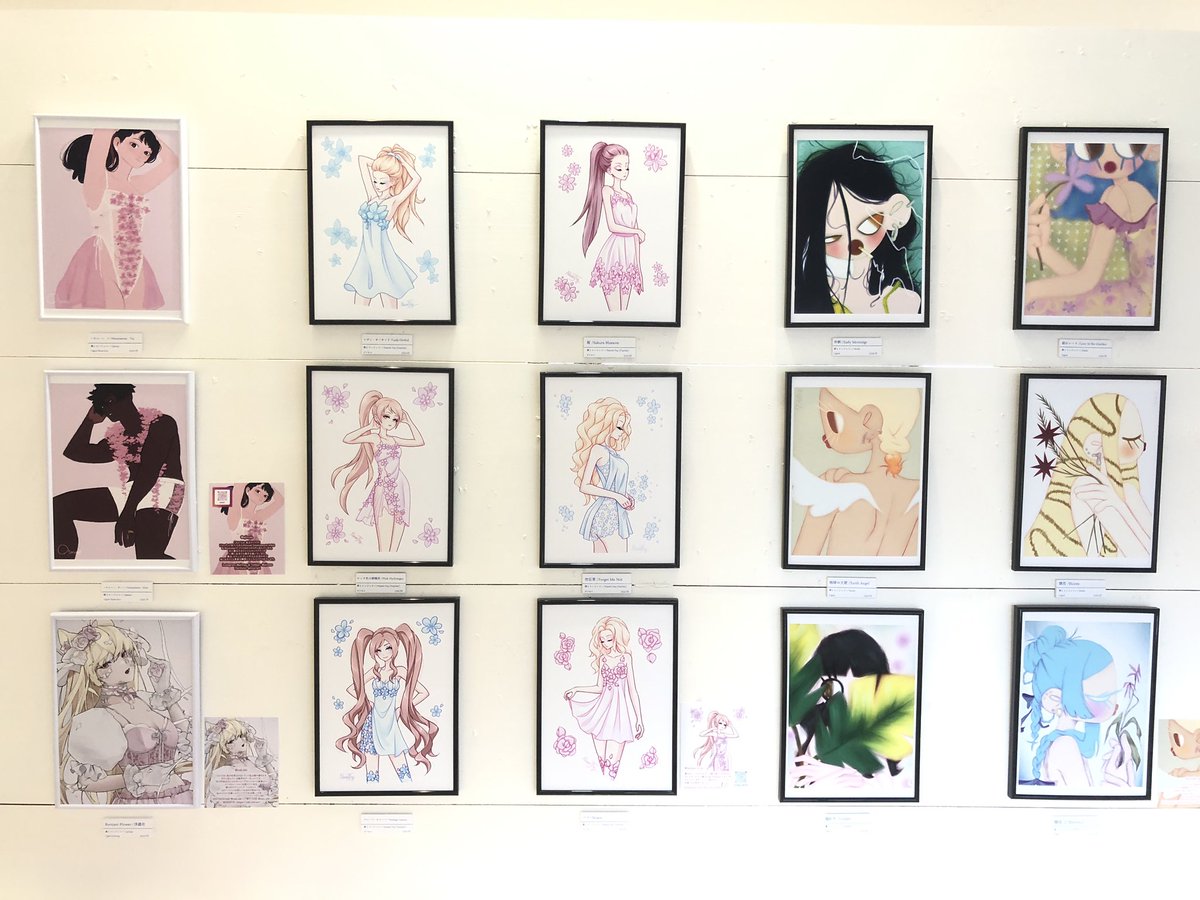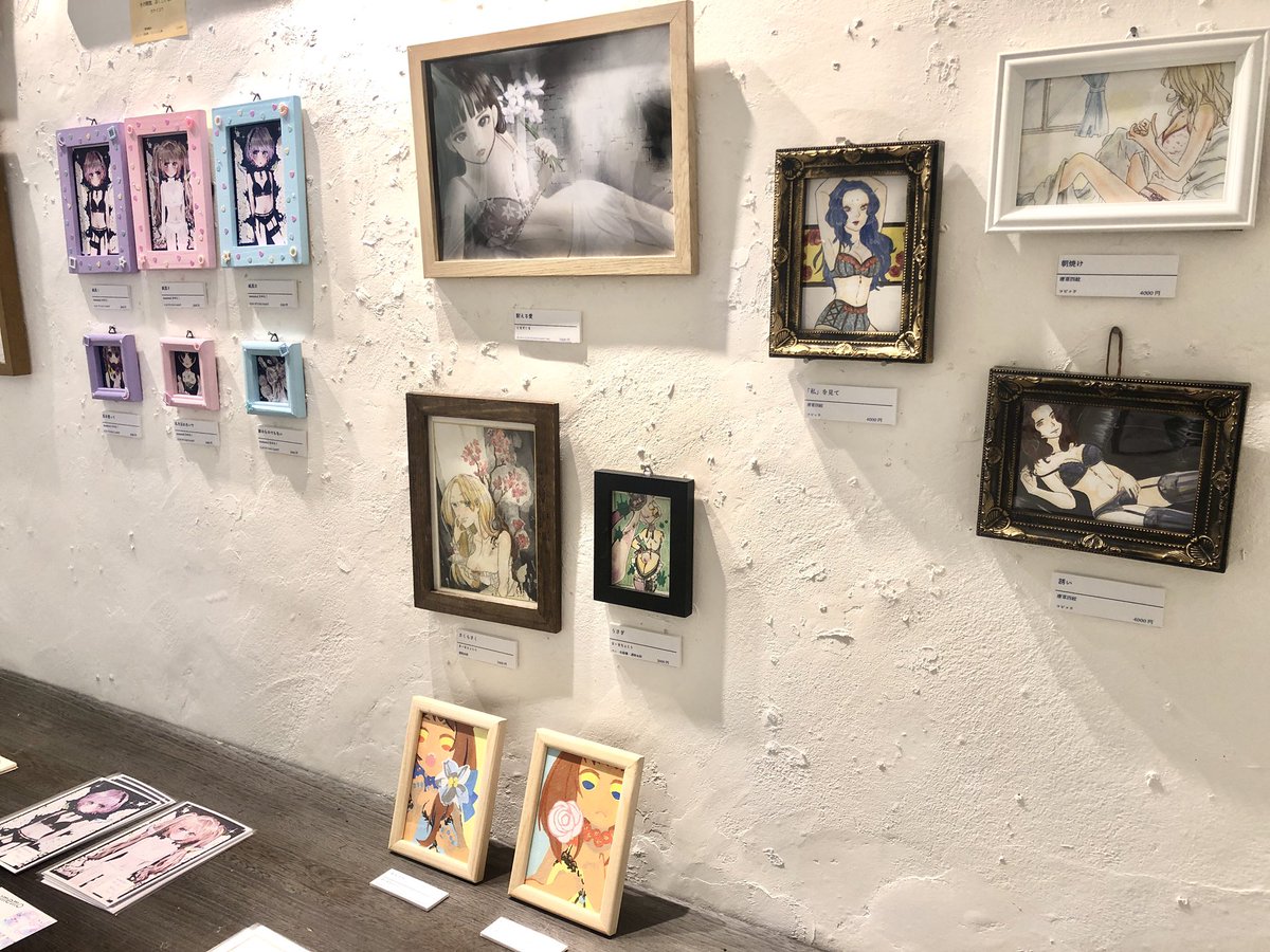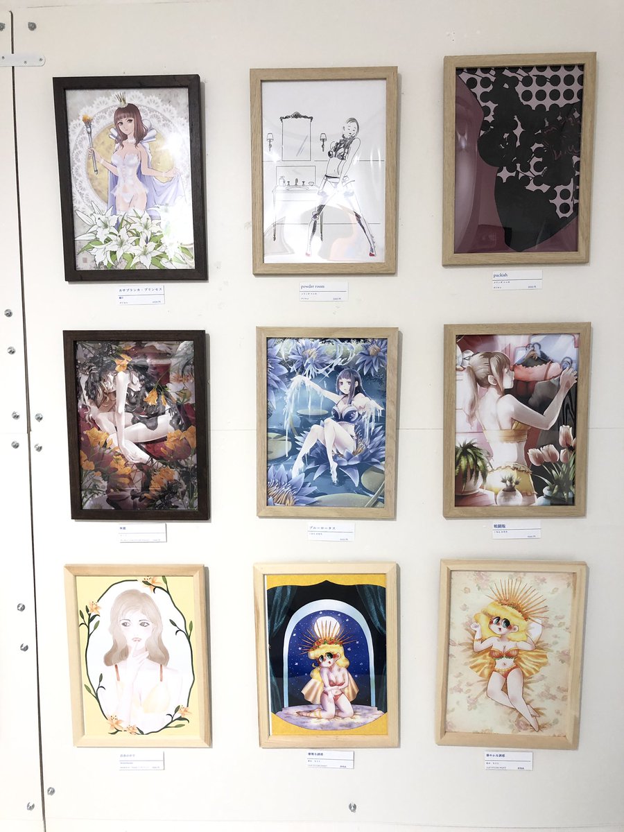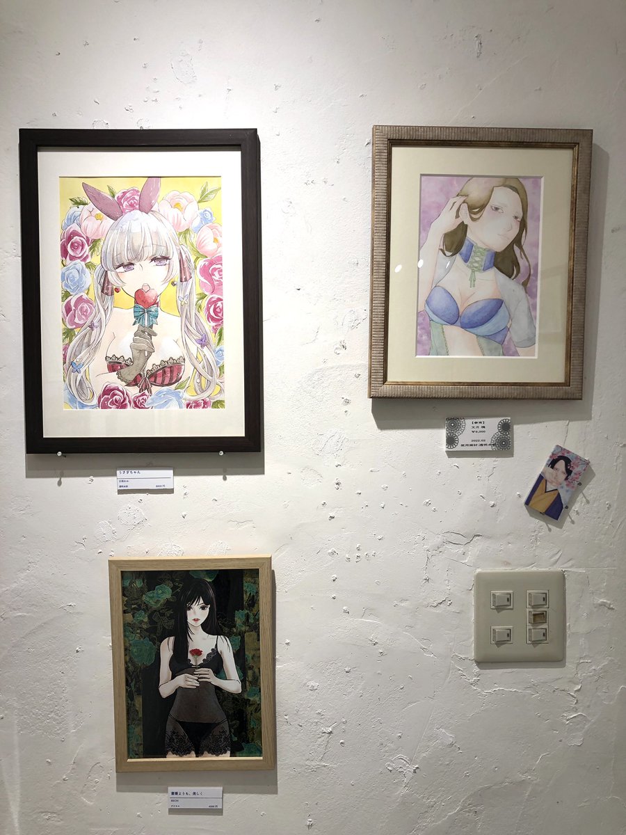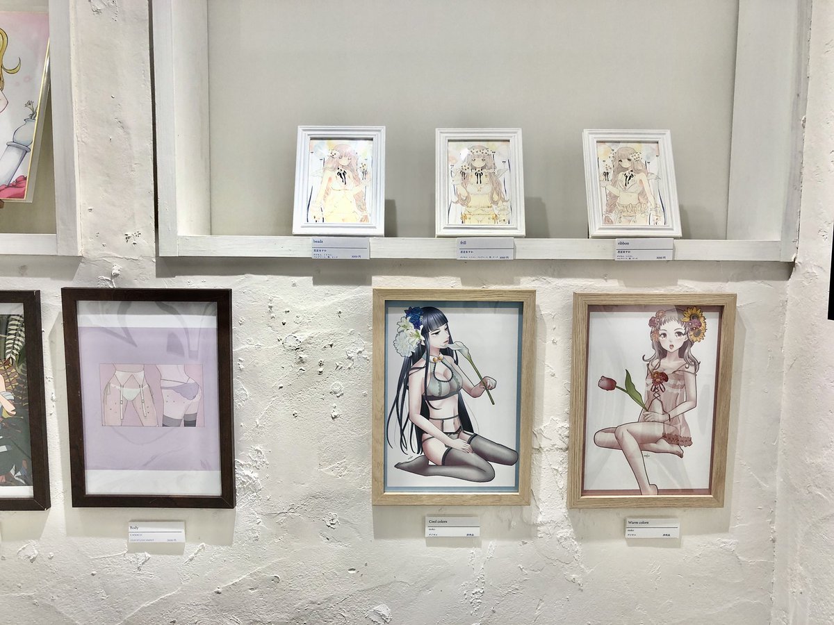 『 #華とランジェリー 』展 7日目◎ 皆さま、展示風景はご覧いただけましたか!🔍 各会場、入り口でアルコール消毒・検温のご協力をお願いしています🤒 マスク着用の上で、たっぷり楽しんでください😷 本日も18時まで🛋 引き続きよろしくお願いいたします! #IYN #イラスト好きな人と繋がりたい