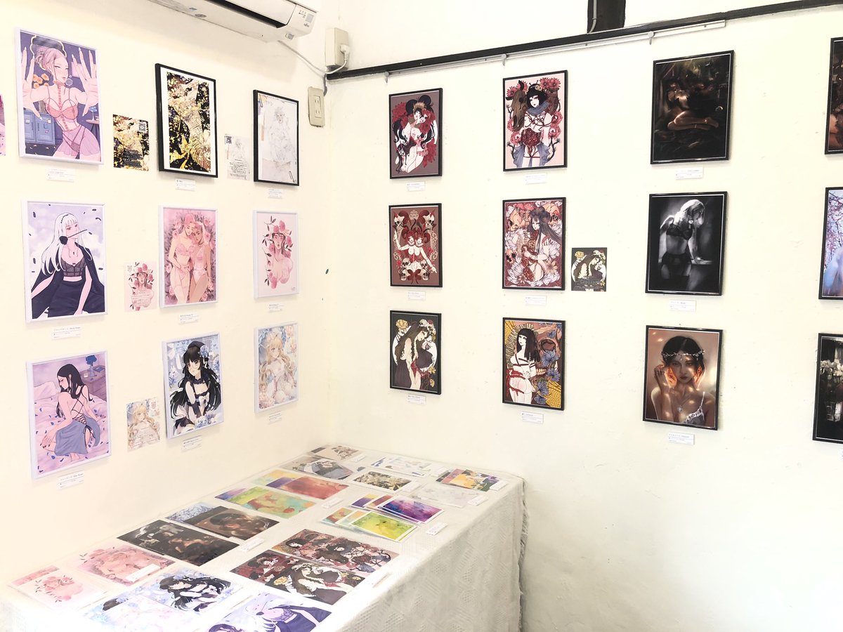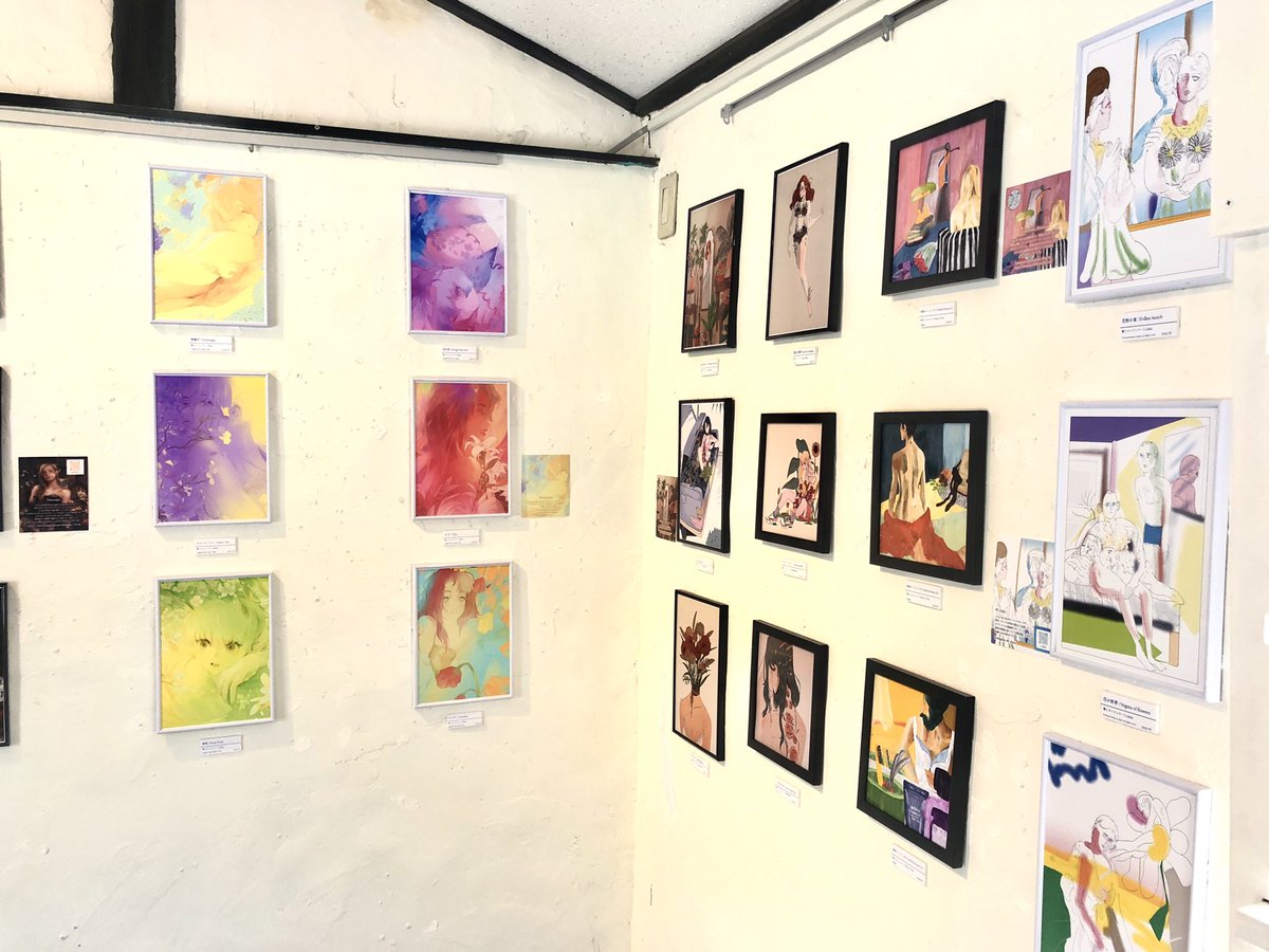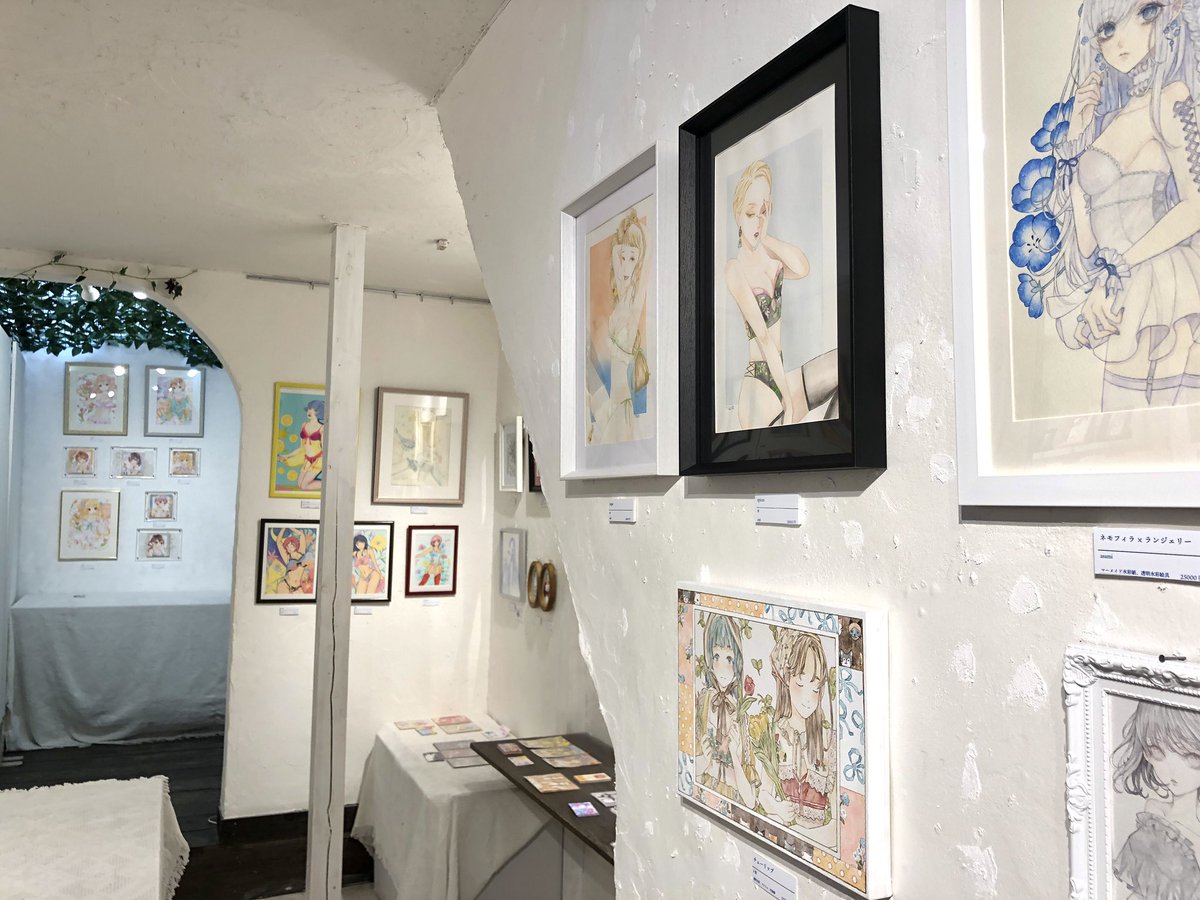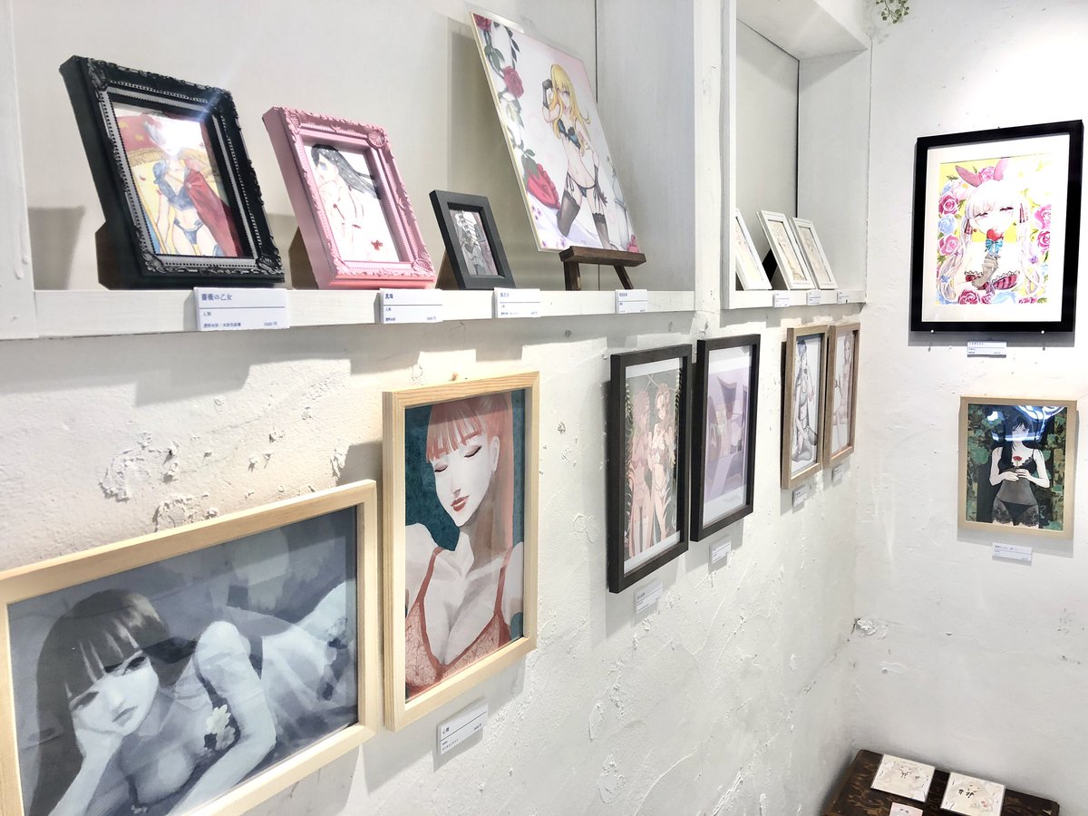 『 #華とランジェリー 』展 7日目◎ 皆さま、展示風景はご覧いただけましたか!🔍 各会場、入り口でアルコール消毒・検温のご協力をお願いしています🤒 マスク着用の上で、たっぷり楽しんでください😷 本日も18時まで🛋 引き続きよろしくお願いいたします! #IYN #イラスト好きな人と繋がりたい