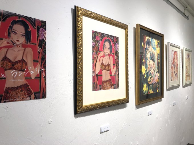本日より!! 『 #華とランジェリー 』展 1日目がスタートです🥀 華やかで、繊細な美しさが会場いっぱいに広がっています。 HPより展示風景、是非見てください。 作品・グッズは通販対応しています🚚 皆さん本日から、どうぞよろしくお願いします〜◎! #IYN #イラスト好きな人と繋がりたい