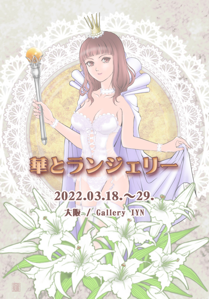 3/18〜開催されるギャラリーIYN様企画の「華とランジェリー」。 イラストをチラ見せ。 ①Gallery IYN(大阪市北区中崎西1−8−24 アインズビル101号) ②Creation Cafe IYN(大阪市北区中崎西4-1-19) #IYN #IYN企画に参加します #華とランジェリー #イラスト #イラスト好きな人と繋がりたい