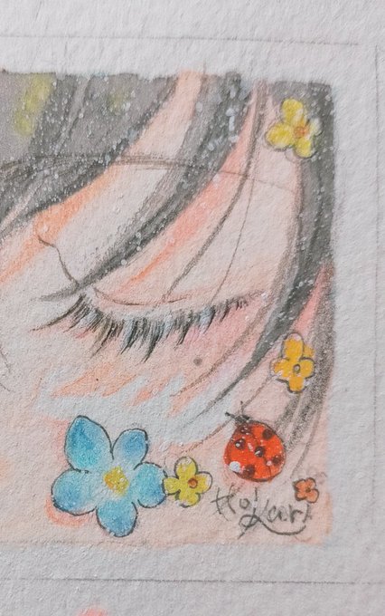 #華に魅せられて で展示中である 花埋め少年の ちぃちゃいバージョンのミニ画が出来たのであとは塗るだけ🌼☺🌷 ほくろもちゃんと描いた💓 #illustration #手描きイラスト #イラスト好きさん #アナログ絵 twitter.com/hkr_8/status/1…