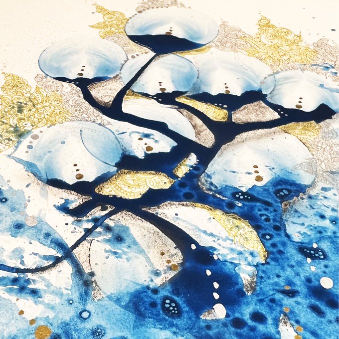 #華に魅せられて こちらの展示会にて作品展示中です🌼✨ 好きな花々を詰めたのと色んな動植物がよく見たら発見出来るので楽しみながら探して見て頂けたら嬉しいです😊✨ よろしくお願いします✨ #illustration #芸術の輪 #創作イラスト #絵墨 #顔彩 #イラスト好き twitter.com/hkr_8/status/1…
