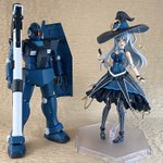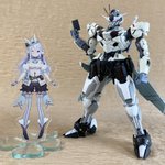 立体化したエアリさんとツーショット。この時調色した塗料で今回も塗りました! ファンアートと言えるかってなると微妙かもですが、「量産機を推しVカラーで塗るシリーズ」はアリな気がしてきた作品となりました! #ガンプラ #rch_M2022 #華月エアリ