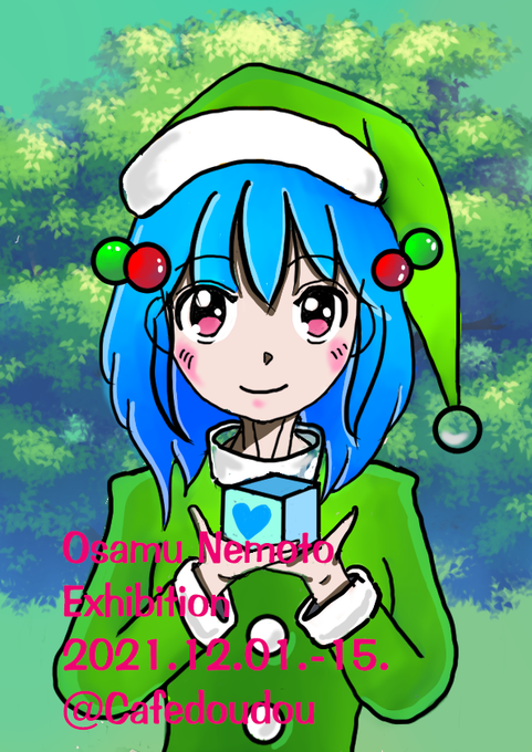 いよいよ、ねもとおさむイラスト展『デジタルアートへの挑戦』が横浜白楽cafedoudou様でスタートしました。今日は17時頃まで在廊します。 @cafe_doudou #絵描きさんと繋がりたい #イラスト好きさんと繋がりたい #クリスマス #萌え系 #デジタルアート