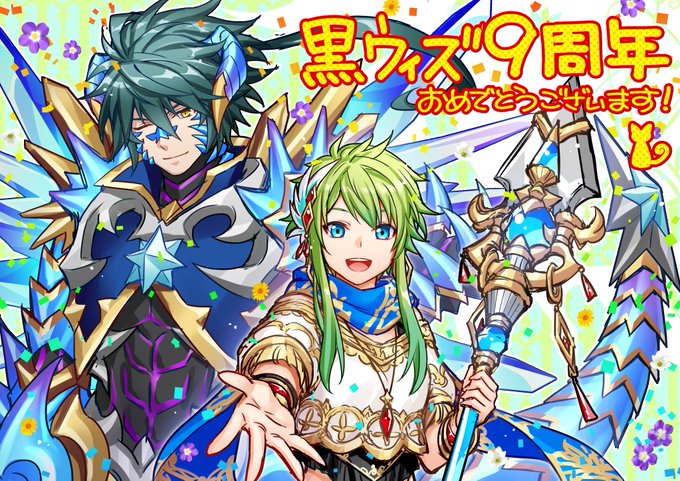 と、時間見つけてはチマチマと黒ウィズスタッフさんに贈らせて頂いていたお祝い落書きシリーズ 今年のやつツイートしていいですよ~ってご許可が頂けたので! 黒ウィズ9周年お祝い落書きは 【ザハール&ナルナ】 を描かせて頂きました!⋆⸜(*´︶`*)⸝⋆イエーイ! #黒ウィズ #落書きファンアート