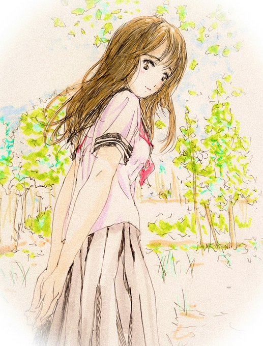 公園を通って下校する女の子✨ #落書きギルド #絵描きさんと繋がりたい #ART_RT #人物イラR #創作イラS #落書イラR #絵柄が好みって人にフォローされたい #初夏の創作クラスタフォロー祭り #art #絵