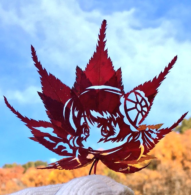 100いいね👍ありがとうございます‼️ 休日に、近くの峠へ紅葉狩りに行った甲斐がありました😭 せっかくなので、太陽光無しのも貼っておきます☺️ #ウェザロアート #葉っぱ切り絵 twitter.com/rarirurero61…