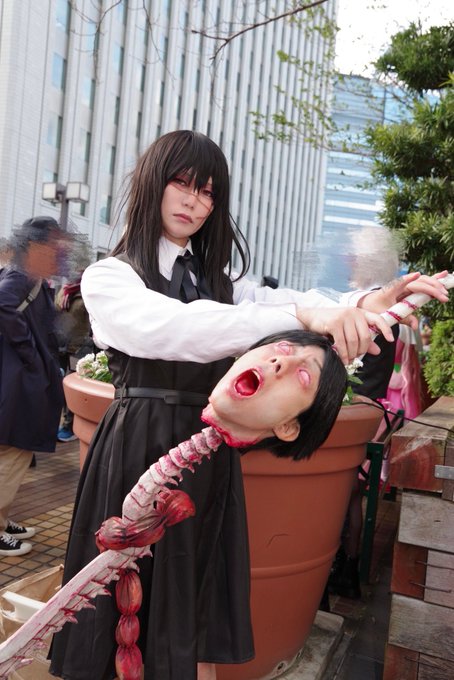⚠️グロ注意のためセンシティブ設定⚠️ おそくほー 池ハロ1日目はチェンソーマン 第二部のヨルちゃんでいました⁽⁽◝( ˙ ꒳ ˙ )◜⁾⁾ 道行く人に見てもらえて田中先生も喜んでます😇 camera:@akuma_de_wool さん #葉月のコスプレ備忘録