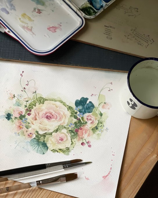 Merry Christmas ~ #水彩 #插畫 #painting #watercolor #watercolorpainting #絵 #수채화 #삽화 #flowerpainting #水彩画 #葉牡丹