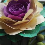お正月の寄せ植えでよく見かける葉牡丹を作ってみました。花言葉が「愛を包む」と「祝福」です。花言葉に因み、小さなハート型のネイルシールを貼りました。 #quillingart #papercraft #floweringkale #クイリングアート #ペーパークラフト #葉牡丹