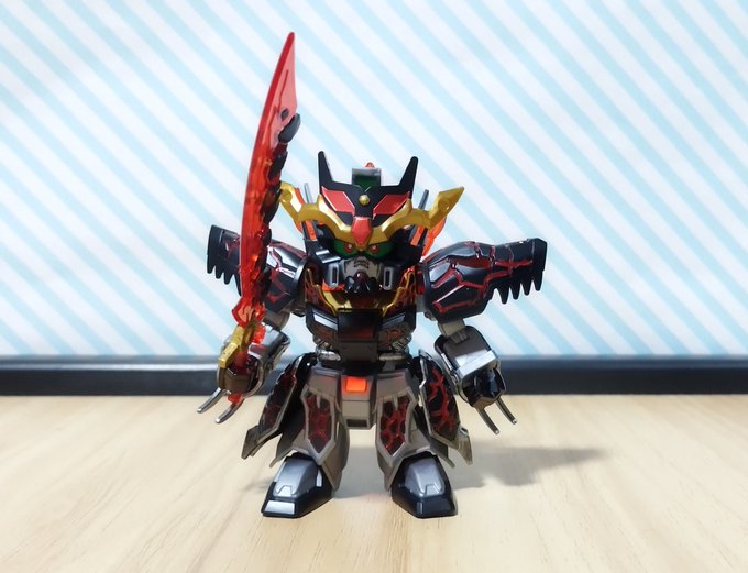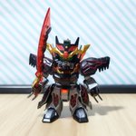 #司馬懿デスティニーガンダム 完成〜。 箱絵に近づける為に、淵獄魔掌はメタルブラックとメタルパープルを混ぜたオリジナルカラーにしてみました〜。 #呂布ナイチンゲール と #董卓プロヴィデンスガンダム を並べて洛陽の三大悪役揃い踏み〜(笑)#三国創傑伝 #ガンプラの画像貼るとRTされると聞いて