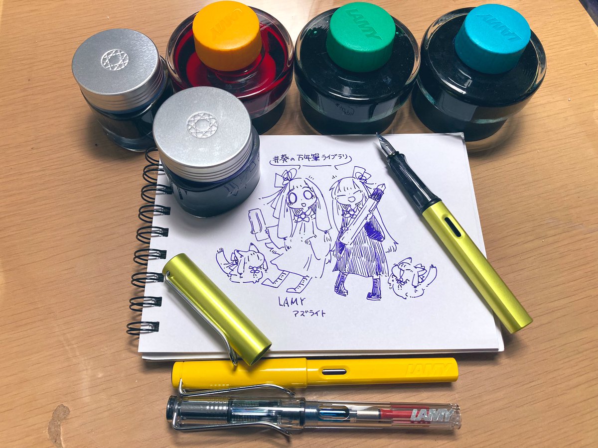 ちょうどサファリ回だったので、私の持ってるやつをば。買った当時は「カッコイイ!!!!」って気持ちで買ってたのでした。調べたら蛍光色のもあったらしいですね(蛍光色好き) 。今では使いやすく描き(書き)やすいお気に入りの万年筆のひとつです #葵の万年筆ライブラリ