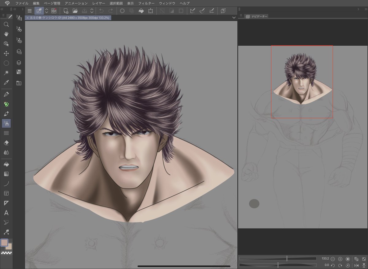 「蒼天の拳」の霞拳志朗らしくなってきたかなぁ♪ #蒼天の拳 #clipstudiopaint #ipadpro #work #art #みんなで楽しむTwitter展覧会 #イラスト好きな人と繋がりたい #絵描きさんと繋がりたい