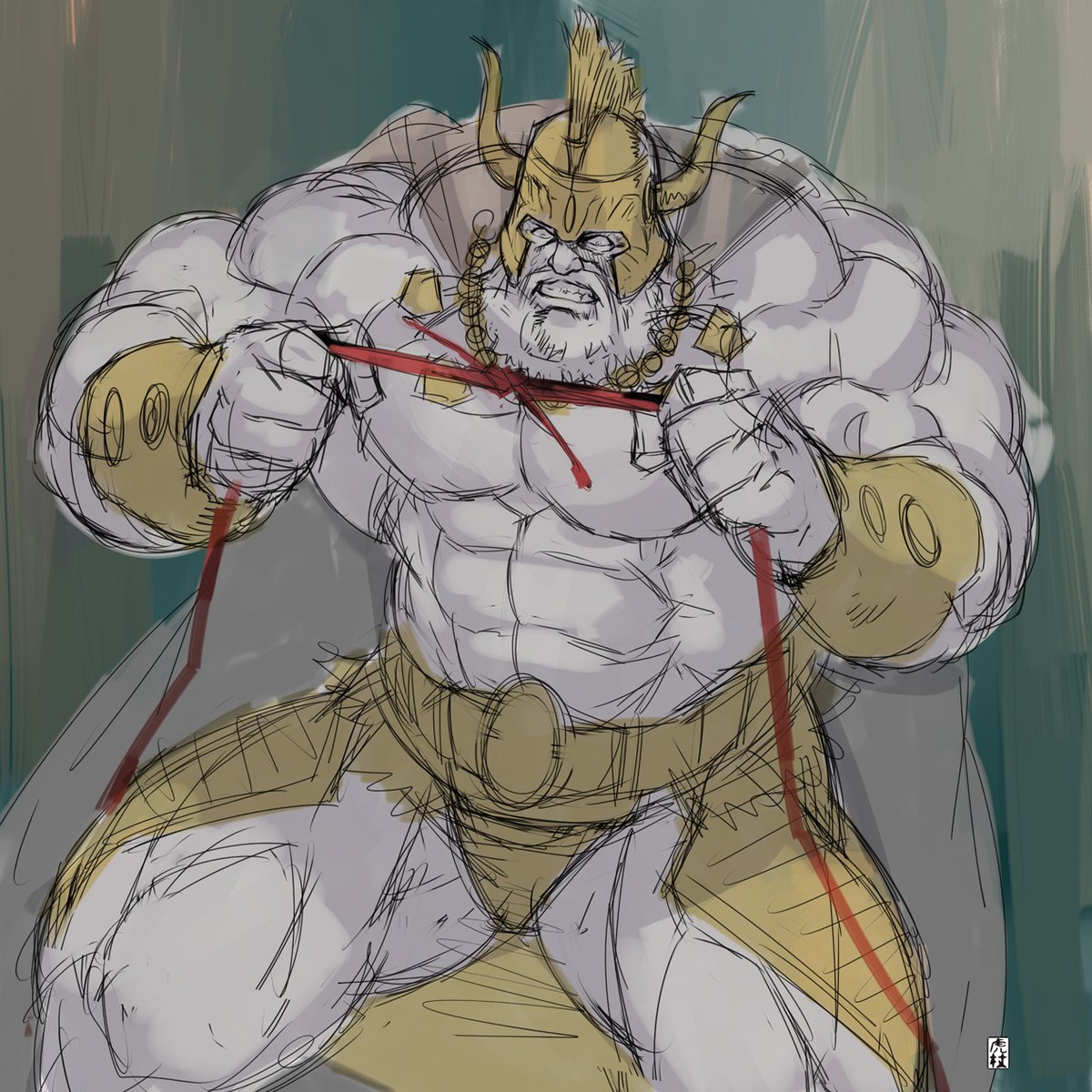 完成致しました!(≧▽≦) 『リジェネシス4巻』終盤辺りの拳さんの格好が“右腕リストバンド””左腕包帯””革ジャン(っぽい?)”と、ケンシロウを彷彿させる衣装だったので嬉しくってケンがとるポーズで描いてみました! リジェネシス、今年は期待です…!!!🥰 #蒼天の拳 #蒼天の拳リジェネシス