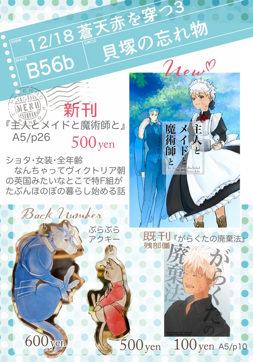 12/18のお品書きです!当日は宜しくお願いいたします〜ッ🙇♀️ 通販は現在在庫切れとなっていますが、12/18のイベント後に手元に残った分を追納予定です📦 もし万が一会場搬入分が当日完売しても、再販&後日とらさんにて通販しようと思っていますので、無理せずお越しくださいませ~🙇♀️! #蒼天赤を穿つ3 twitter.com/monpuchi_marke…