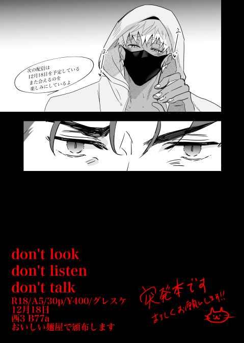 12月18日蒼天3の新刊その2です! 配信ネタです〜!特殊性癖なので支部の注意書きやサンプルを見てから検討して頂けると助かります…! #蒼天赤を穿つ3 pixiv.net/artworks/10365…