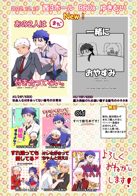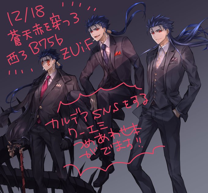 12/18 #蒼天赤を穿つ3 |西3 B75b「ZUi.F」新刊 『SAVASTA BON』B5/68P/全年齢向 カルデアSNSがテーマのクーエミ詰め合わせ本。槍弓・キャス弓・狂王弓・プニ弓・ミニクー弓・セタ弓+クー族わっちゃり →Pixiv|pixiv.net/artworks/10358… →とらさん|ec.toranoana.jp/joshi_r/ec/ite… 槍・術・all (1/2)