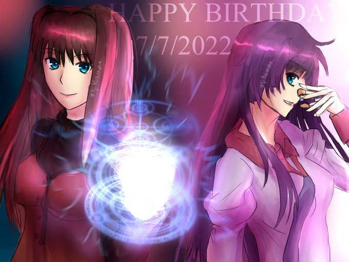 #まほよ10周年 #蒼崎青子 #久遠寺有珠 #過去絵を投げて絵を描いた気になろうキャンペーン #二次創作 #春の創作クラスタフォロー祭り ㊗️魔法使いの夜 10周年🎉(●︎´▽︎`●︎)🎉