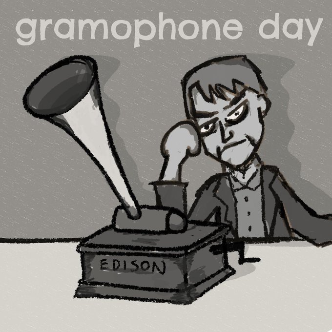 #蓄音機の日 今日はエジソンが 蓄音機の特許を取った日らしいです。 エジソンと蓄音機の絵です。 この歴史があるから 今の僕達の音楽ライフが あるのですよね。 #イラスト #絵柄が好みって人にフォローされたい #illustration #今日はなんの日