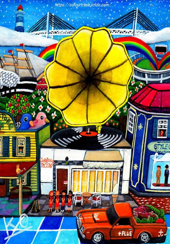 今日は蓄音機の日だそうです☺️🐥🎶 中の人はおうちフジロックでマサムネさんのラジオで流れた曲のバンドDINOSAUR JR. やJAPANESE BREAKFASTやALTIN GÜN と他にも沢山ロックを聴けて最高でした🥰🎶 #イラスト #digitalart #illustration #OC #今日は何の日 #蓄音機の日 #OCイラS #鳥