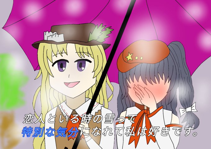 #蓬莱人形20周年記念 #東方 #東方Project #蓬莱人形 「恋人といる時の雪って、特別な気分になれて私は好きです。」 蓬莱人形20周年おめでとです!! ということで、あの2人を描きました。 あと、百合っていいよね!(唐突)