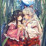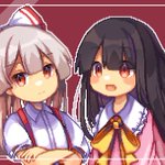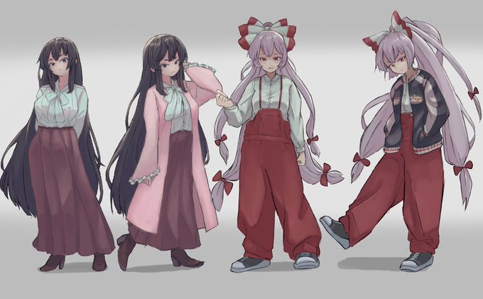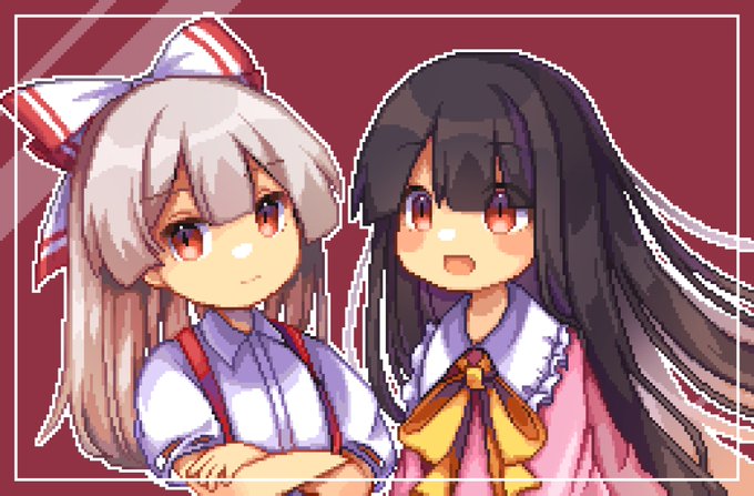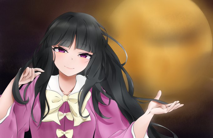 🌙🎍 . . . つねみ(@ closer_f )さん主催 「東方ミュシャ風合同誌」にて寄稿したイラスト(全体公開許可が降りたので公開しました👌) 人選はめっちゃ悩んだのですが…構図は即決した思い出!布を垂らしたかった #蓬莱山輝夜 #八意永琳 #東方Project