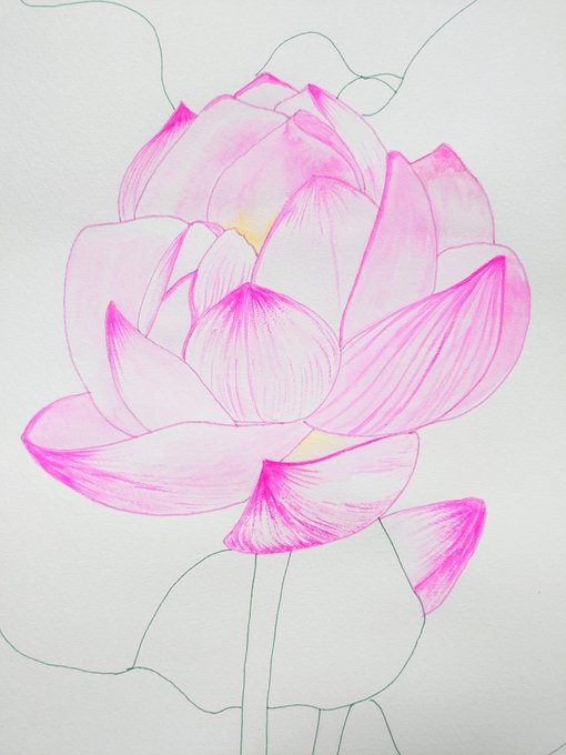 今回の絵日記で描くのに手こずった蓮の花。 そんなInstagram投稿はコチラ➡️instagram.com/p/CgabsqVPDjy/… #絵日記 #イラスト #illustration #AdobeFresco #蓮の花