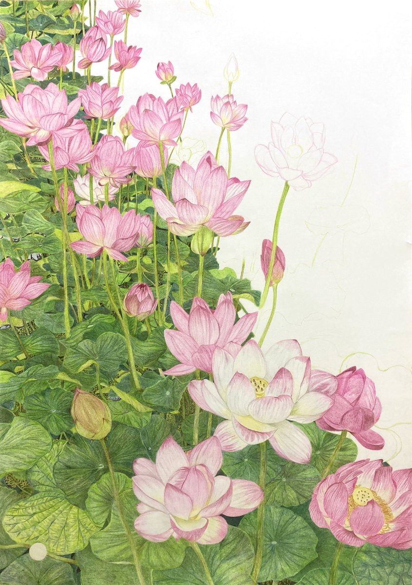 色鉛筆画【 蓮の花 】 #色鉛筆 #色鉛筆画 #絵画 #絵 #風景 #蓮の花 #pencilart #colorpencil 完成しました。 A2サイズの作品になります。 ご覧頂き有難うございます。 ー yotto ー