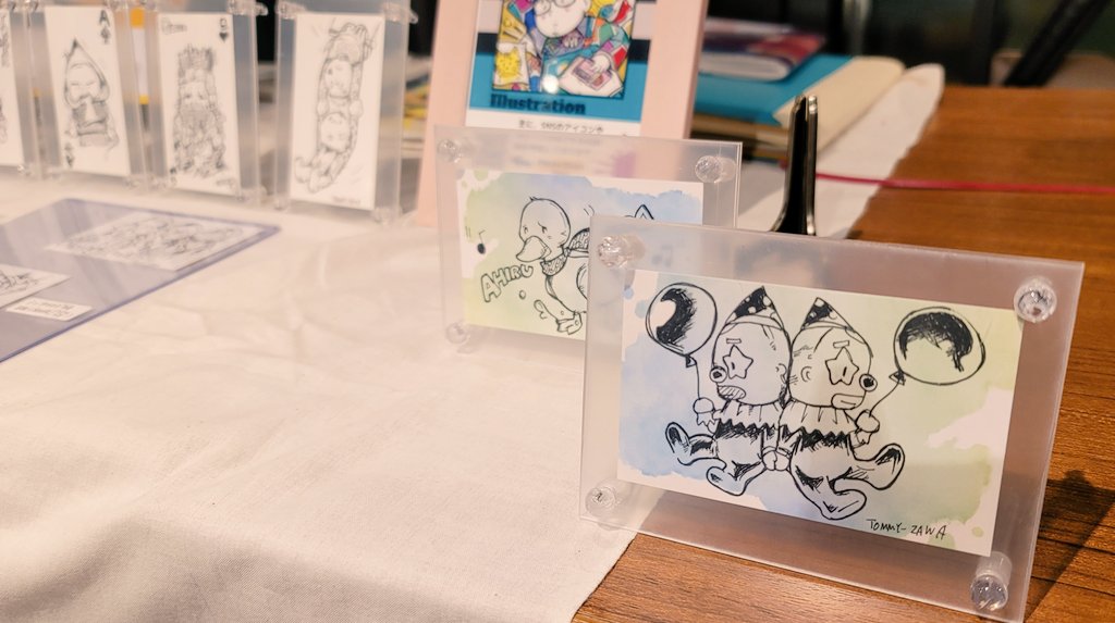 「誰も知らない。」という作品です。名刺サイズ、アナログイラストです。フレームに入れて販売してます。#アナログイラスト #オリジナルイラスト #蔦屋書店熊本三年坂 #熊本市 サーカスBOYSやトランプシリーズもありますので、見に来てくださいね twitter.com/tsutaya3k_even…