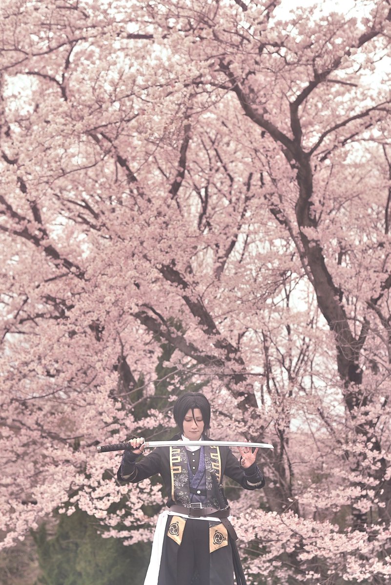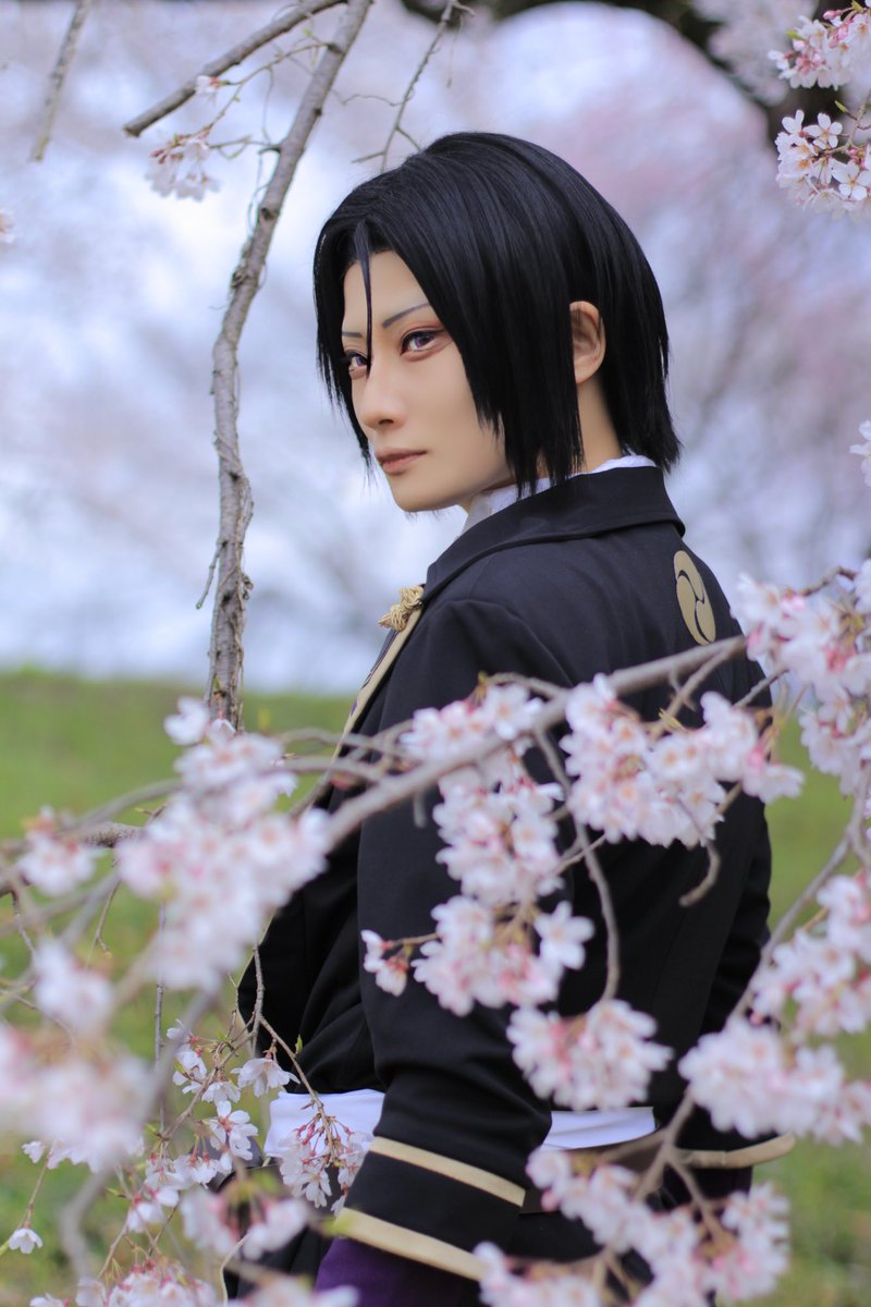 【Cosplay】 薄桜鬼真改 土方歳三:つば豆@tsu0505 撮影:三脚 お誕生日おめでとうございます🥰🎂 取り急ぎ、やっと今年の桜で撮影できた真改和装でお祝いさせてください🙏✨ #土方歳三生誕祭2023 #薄桜鬼土方歳三生誕祭 #おおつきコスプレ