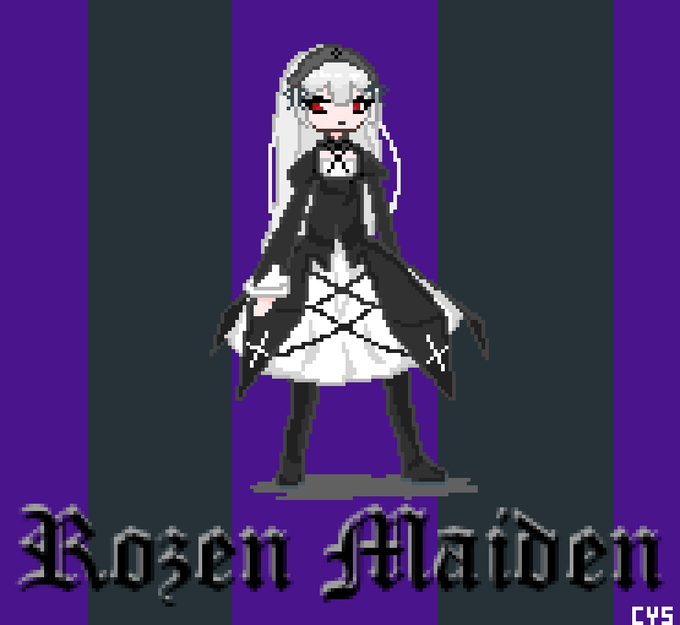 2022-10-4 使用軟體:Aseprite 水銀燈 1.0 收到回饋,修改了頭部,鞋寬,新增了翅膀。 #pixelart #pixelartist #pixel #ローゼンメイデン #RozenMaiden #薔薇少女 #水銀燈