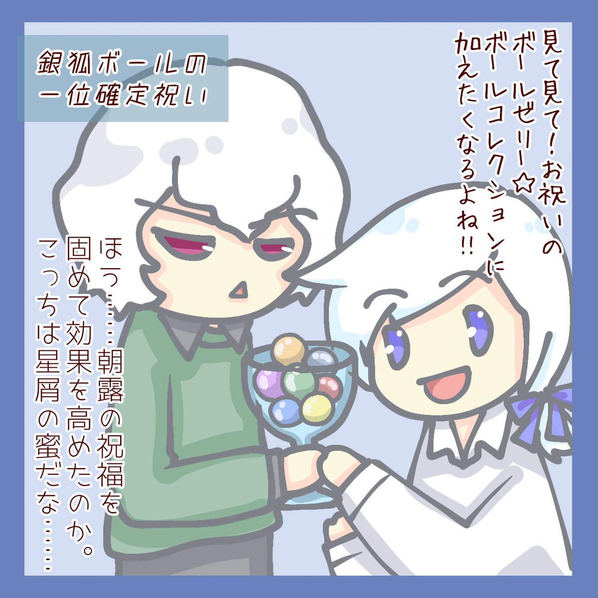 #薬の魔物12月の銀狐ボール 『銀狐のボール選挙の余波』 なイメージを捏造して描いてみた🖌️ #つぎラノ 本日、最終日🦊🐾 tsugirano.jp 🔵🟡🟢🟤🦊🐾 #薬の魔物 #くすまも #イラスト #系譜の王様がボール好きと風のうわさで知ったボラボラさん達が愛情込めて縫い上げました #ボラボラ
