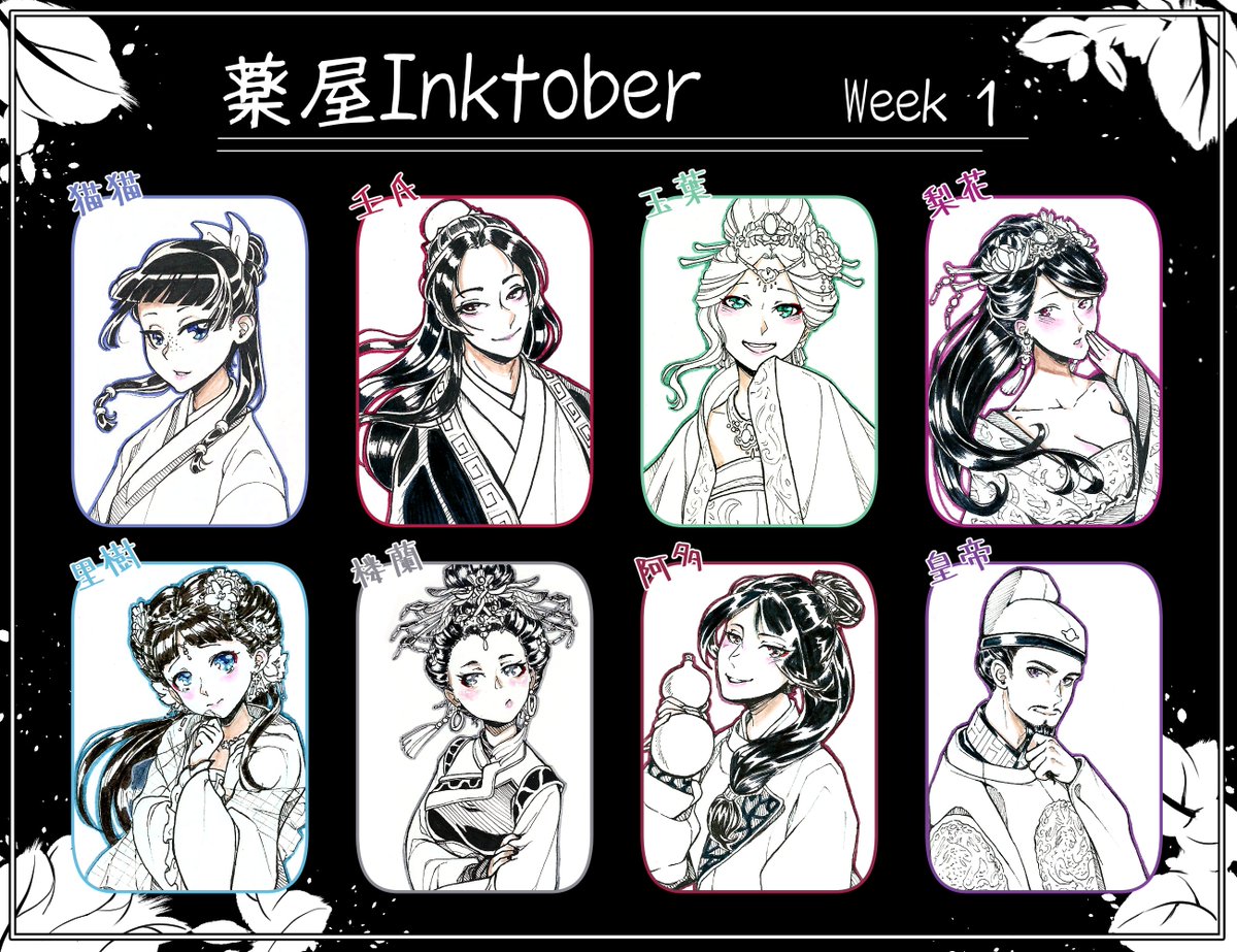 #薬屋FA #薬屋Inktober 絵をスキャンしてきれいにして、まとめました。 4、5枚は満足しています。 それにしても、参加者の皆さん、一週間の達成おめでとうございます!!! o(〃^▽^〃)o
