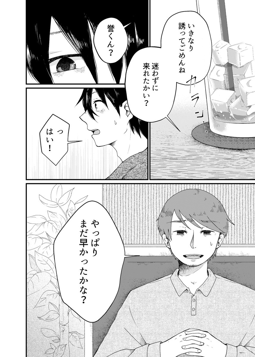【創作男女】オメガバース 間が開いてしまってごめんなさい! 今回は誉君と三嶋先生メインの話です。 1/6 #藍色の夜に歌えば 8話 #創作漫画 #漫画が読めるハッシュタグ でき次第小分けにしてUPします。 気長にお付き合いください。