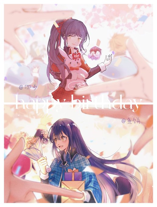 祝宝宝生日快乐呀!~お誕生日おめでとう🎉🎂🎈🎊🎈 今年是和鱼饼@bingza0704 一起画的系列合绘!太喜欢这个构图设计了🥰 #しゅごキャラ #藤咲なぎひこ #藤咲なでしこ #藤咲なぎひこ生誕祭 #藤咲なでしこ生誕祭 #藤咲なぎひこ生誕祭2023 #藤咲なでしこ生誕祭2023